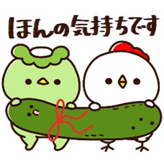 かっぱのカッパちゃんとにわとりのにわさんの敬語スタンプです。