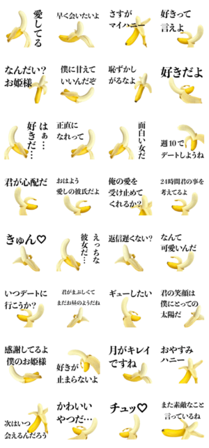 【彼氏用】バナナdeカップル連絡【愛】 スタンプ画像一覧