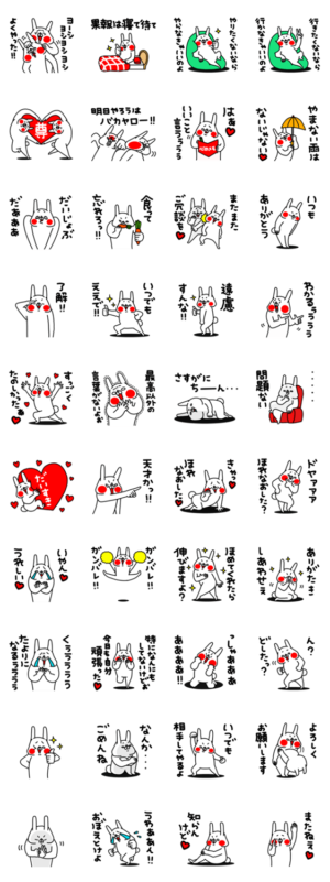 全力でうざい全力でおちょくるあざとかわいいうさぎの前向きポジティブ編。ネガティブも人見知りも根暗もコミュ障もオタクもチー牛も明るい陽キャっぽくなれるスタンプ。cosotto より発売
