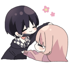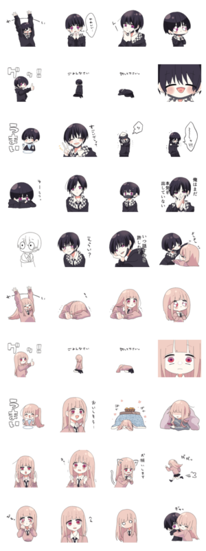 男の子と女の子です。マスクしてます。スタンプで会話を更に楽しんでみましょう。佐々倉さくら より発売