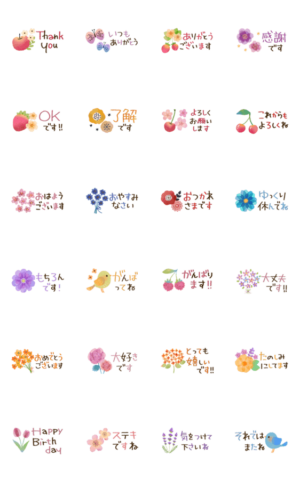 動くfleurs et fruits♡コンパクトスタンプ スタンプ画像一覧