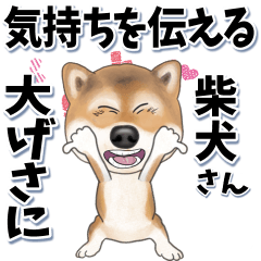 大げさにアピールする柴犬さんの飛び出すスタンプです。Masajii より発売