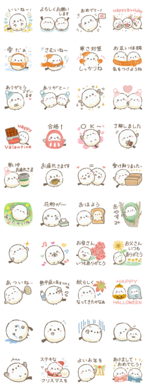冬多め(1年中使える)春夏秋も! かわいい小鳥 野鳥のエナガさんとシマエナガさんの使いやすい日常会話スタンプです。/白いことり/便利/毎日使える/ほんわか