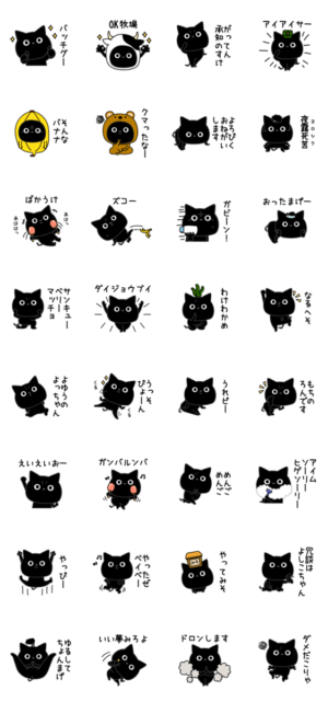 5個目です。ネコ好き集まれ!クロネコだよ!ぼく黒猫だよ!トーク画面の背景黒だと見づらくなるよ!気をつけてね!type-E より発売