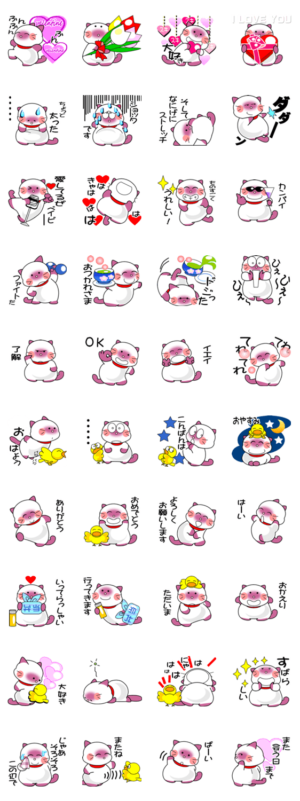 ちょっと太めの猫、恋する愛しのまるにゃんの楽しいスタンプです。ヴァレンタインにもどうぞ。ohausa より発売