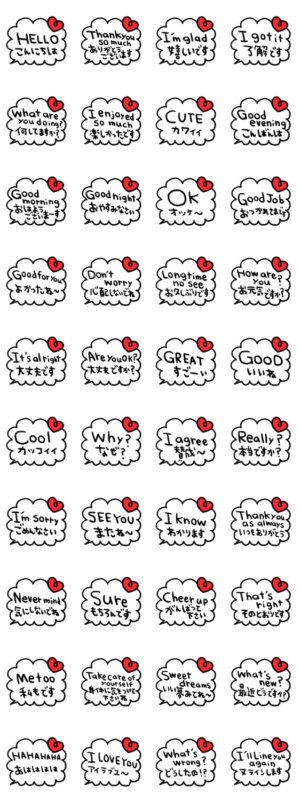 シンプルな日常会話スタンプです。日本語&英語スタンプ