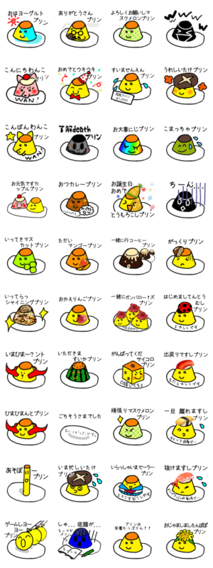プリンdeダジャレ★40個全部使えるぞ! スタンプ画像一覧