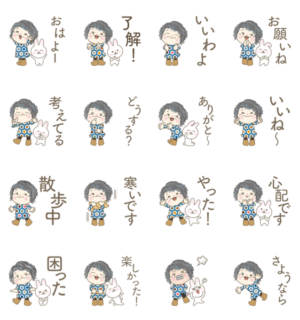 おしゃれなおばあちゃんのスタンプです。hirame より発売