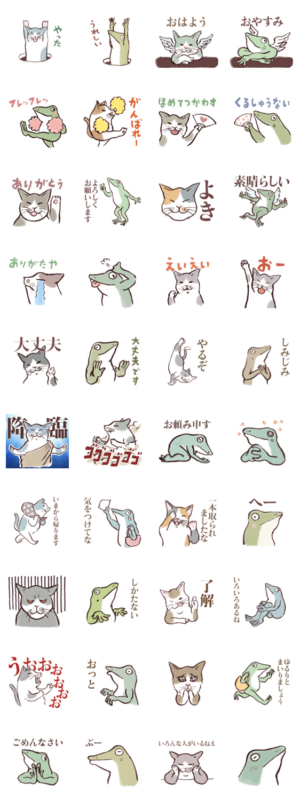 猫とカエルのゆるゆるスタンプです。kappado より発売