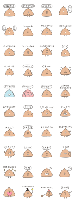 一年中使えそうなウンコのスタンプです。毎日使える便利な言葉がたくさん入ってます。ワタシはタワシ より発売