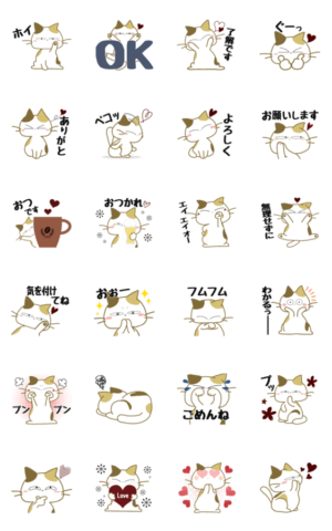 みけさんの動くシンプルな気持ちを伝えるスタンプです!まちゃの部屋 より発売