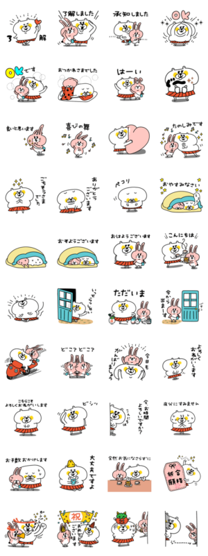 ピンクのうさぎちゃんと一緒の一年中使えるスタンプです。/春夏秋冬/年中使えるスタンプ/ゆるい敬語/丁寧語/誕生日/シンプルなお返事/karin
