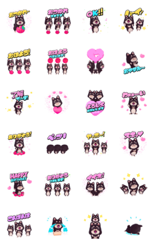 元気いっぱい、画面いっぱいワンちゃん達が飛び出します。日常会話で使いやすいポップアップスタンプです♪山口タカ より発売