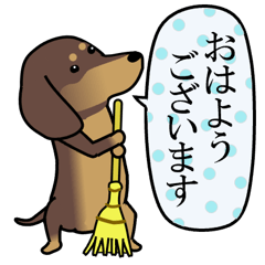 「激しく尻尾をふるイヌ」シリーズ。ダックスフンドの毎日、年中使えるスタンプです。