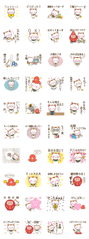 縁起の良い招き猫の受験応援スタンプ スタンプ画像一覧
