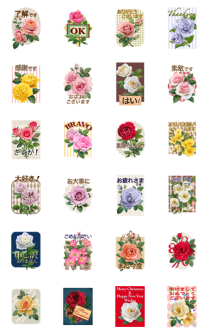 元気な薔薇にメッセージを託しました。 ※このスタンプはトークルームで大きく表示されるBIGスタンプです。HAL'S MOM より発売