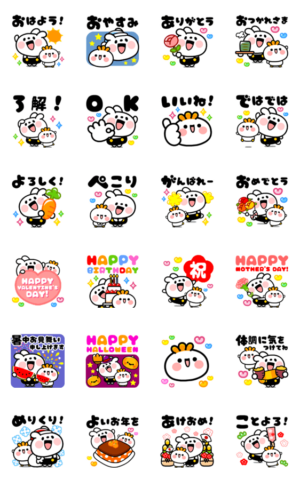 ウサギのムサシの年中使える可愛いスタンプ。毎日使える挨拶と返事、バレンタイン、母の日、誕生日、暑中お見舞い、ハロウィン、年末年始の挨拶まで!背景が動くよー。