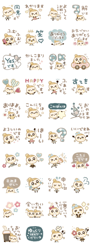 ほぺ美ちゃんシリーズ♡カワイイくすみカラー♪色んな方に送りやすい、敬語スタンプです♡小さな幸せ/感謝あさごぱん より発売