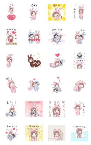 うさ耳ジャージちゃんがキミの心に飛び込むポップアップスタンプ☆ぴょこぴょこ可愛い仕草が好きになっちゃうよ。ジョイネット より発売