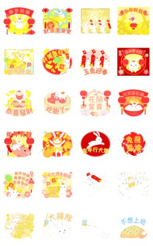 台湾版【春節】新年快樂! ラッキーうさぎ スタンプ画像一覧