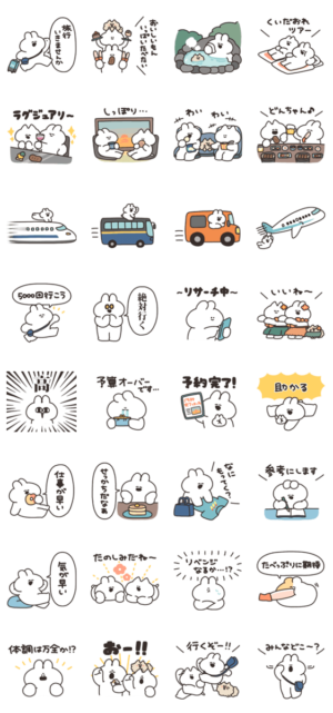 旅行に行くうさぎのスタンプです。ナポリ より発売