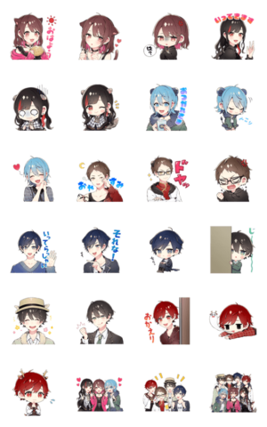 もるでお・ゆとり・無音・赤じゃむ・くろくも・利香・松下の6人の可愛いスタンプです。Illust:箱型ぴヲ