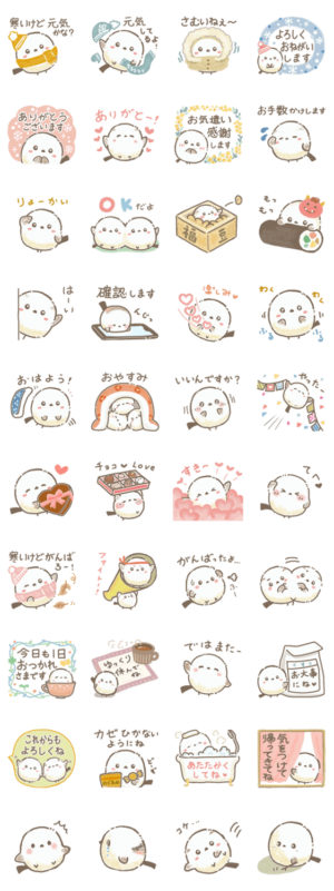 かわいい小鳥 野鳥のエナガさんとシマエナガさんの使いやすい冬の日常会話、気持ちを伝えるスタンプです/白いことり/便利/毎日使える/ほんわか/節分/バレンタイン