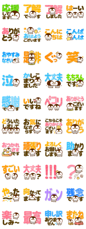 ころころ可愛いペンギン♡ぺんぺんデカ文字 スタンプ画像一覧