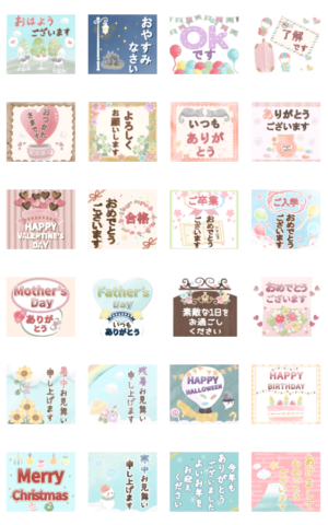 春夏秋冬いつでも使える便利なスタンプです。合格・卒業・入学・暑中見舞い・残暑お見舞い・寒中お見舞い・ハロウィン・クリスマス・年末年始・正月・あいさつ・敬語