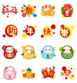 よく使う挨拶を中国語(繁体字・台湾華語)で登場。 新年・招財・大吉大利・福・だるま・挨拶...