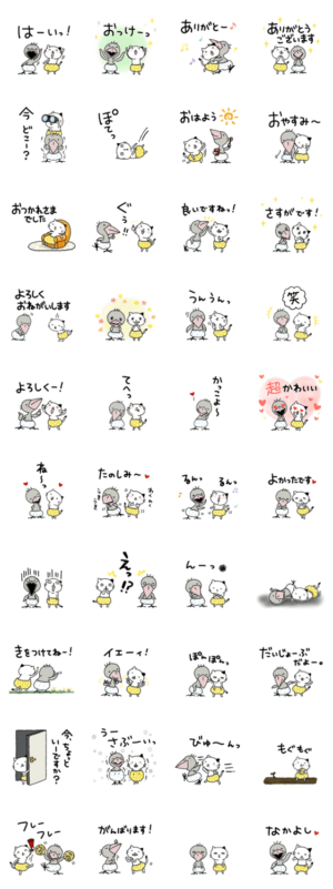 ハシビロコウと猫ちゃんのベイビー編♪毎日便利な日常会話のスタンプです。トマト より発売
