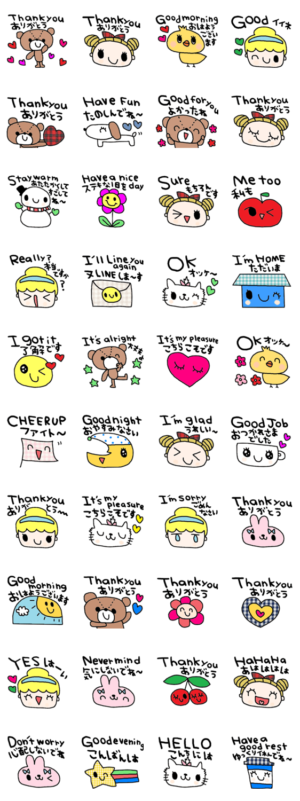 シンプルな日常会話スタンプです。日本語&英語スタンプnenerin より発売