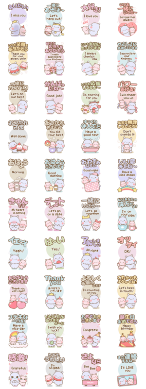 カバたんの[日本語&英語]でか文字スタンプです♪ 愛の告白や思いやりなど、LOVEトークをバイリンガルにお楽しみください♫ 各種イベント、誕生日やお祝いにも使えます♬