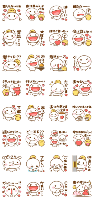 ハートや笑顔があふれているスタンプです。送るとほっこりしてもらえそうです。