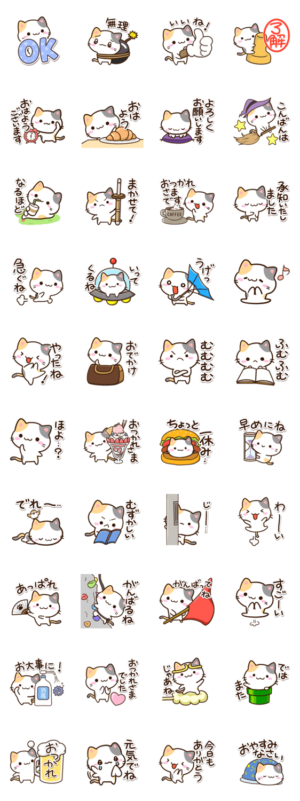 『小さい三毛猫』の『着せかえ』と『絵文字』もあります!ずっと便利に使える、あいさつや言葉の、かわいいミケネコスタンプです。みけねこ好きな方にぜひ。【かたこ】かたこ より発売