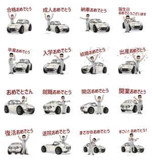 愛する車をデフォルメしてスタンプにした。モーターサイクルが好き。4輪車でドライブする。スポーツカーが好みのドライバーです。楽しいカーライフ。お祝い!bon より発売