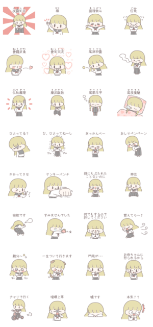 かわいいヤンキーの女の子スタンプです。関連用語:友達/かわいい/日常/家族/学生/高校生/中学生/大学生/セーラー服/金髪/不良/ひよってる/卍