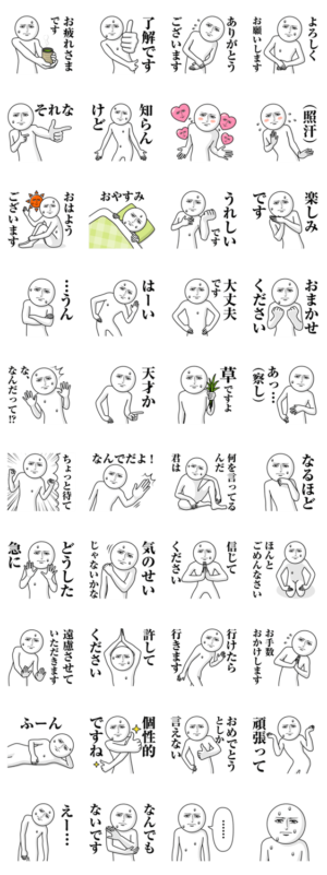 (汗)な感情・気持ちを伝える面白い真顔のスタンプです。日常で使いやすい敬語・あいさつ・ツッコミ。センジュ より発売