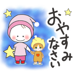 しろまる子ちゃんとニャン君の一年中便利に使える仲良しスタンプです。