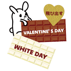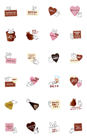 バレンタインホワイトデーに。友達向けやイベント対応など仕事にも。感謝の気持ちを伝えることができます。シンプルうさぎのふにゃらびシリーズ。ポップアップスタンプ。