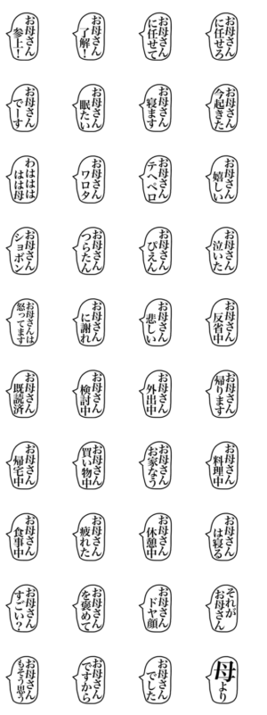 毎日使えるお母さん専用の吹き出しです。そのままスタンプとしても使えますが、お母さんの写真に吹き出しを挿入したり、写真の編集にも使えます。ともちん より発売