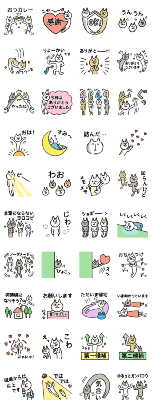 シュッとスリムな猫たちの1年中使えるスタンプです♪OTOBOOK より発売