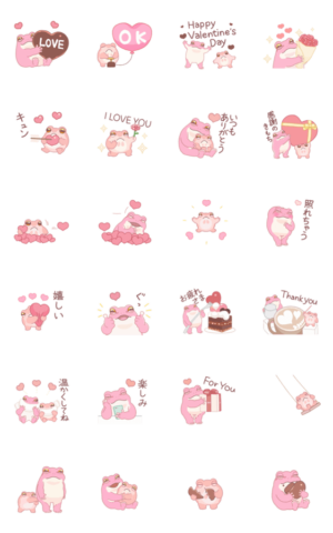 ハッピーバレンタインデー!ピンクのカエル スタンプ画像一覧