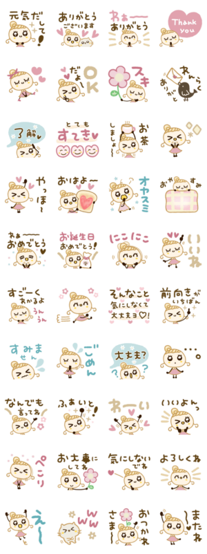 ほぺ美ちゃんシリーズ♡明るくて前向き♡チャーミングな毎日スタンプです♪小さな幸せ/感謝あさごぱん より発売