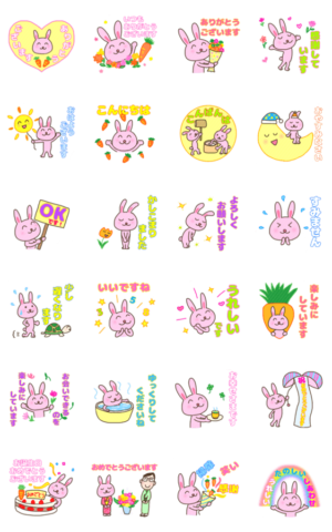 ありがとういっぱいスタンプシリーズ、うさぎ年にちなんでうさぎの「SKぴょんちゃん」登場です。うたしなていねい言葉で毎日の会話をお楽しみいただけたら嬉しいです。