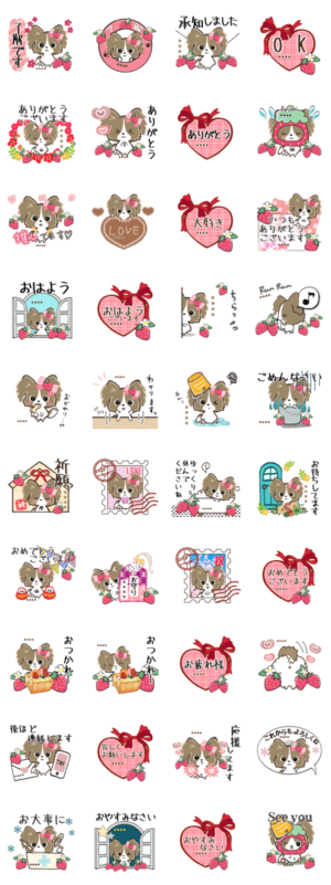 ♡愛犬の名前が入る♡パピヨン×いちご♡ スタンプ画像一覧