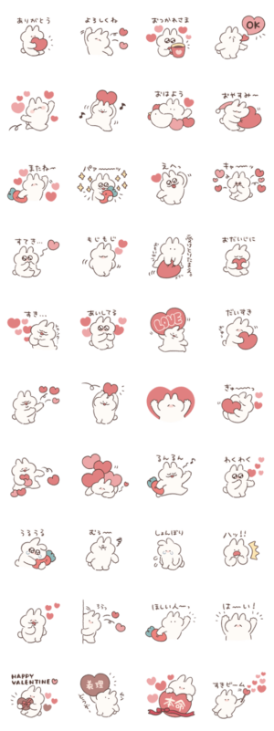 大好きな気持ちを伝えるハートいっぱいのスタンプです。バレンタインにもぴったり!ウサギ/愛/チョコ/ピンク/かわいい/ラブラブ/カップル/恋人/友達