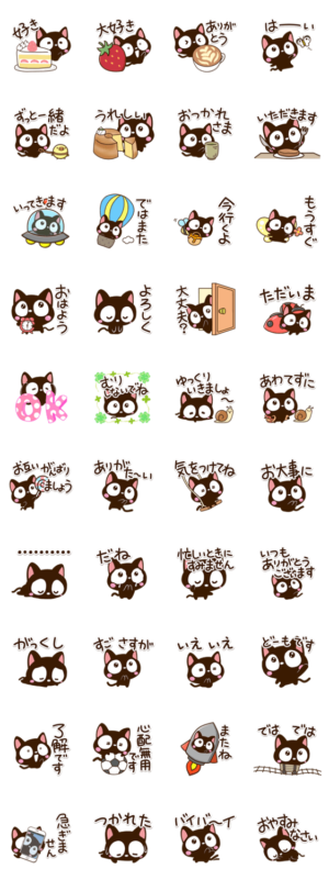 『小さい黒猫スタンプ』の相手を思いやる言葉や、励ます言葉、よく使う言葉等、やさしいクロネコのスタンプです。くろねこ好きな方にぜひ。【かたこ】かたこ より発売