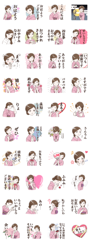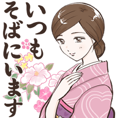 日頃の感謝の気持ちや好きな想いをおかみさんスタンプに乗せて、届け〜!※バレンタイン・着物・恋人・カップル・彼氏・大人女子・和・女将・日常・挨拶・癒し・筆文字・春