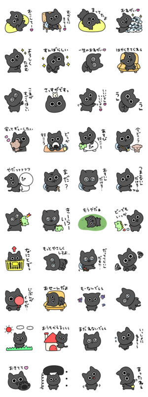 甘えたい。シュールなミニ黒猫のスタンプです。eribo より発売
